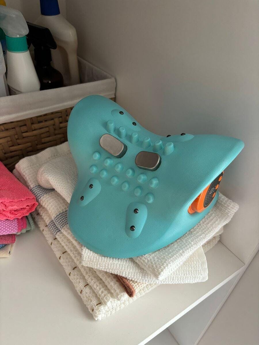 Then my sister sent me a link to this, and I thought, why not? I’m giving it 4 stars only because shipping took about a week. I wish it were faster. but the product itself is amazing. When I first laid down on it, I felt a strange tingling, like my neck muscles were contracting on their own. It felt weird at first but incredibly relaxing. Then the heat kicked in, and I could almost feel blood flowing through my neck, and the massage made it even better.